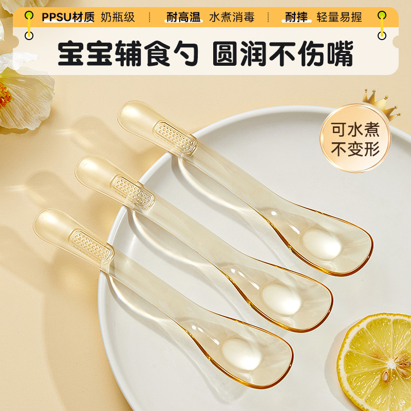 新しいPPSUの元宝のスプーンの赤ちゃんは自主的に食事をします。