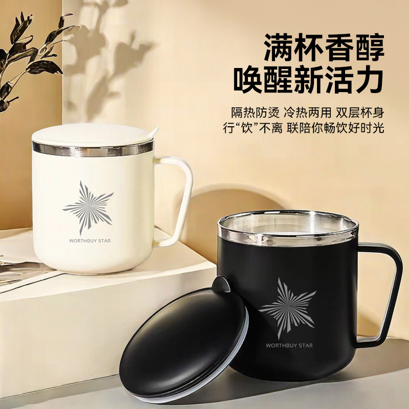 クロスボーダー304ステンレスコーヒーカップオフィスハンドル付きマグカップ二重断熱耐高温クリエイティブカップ