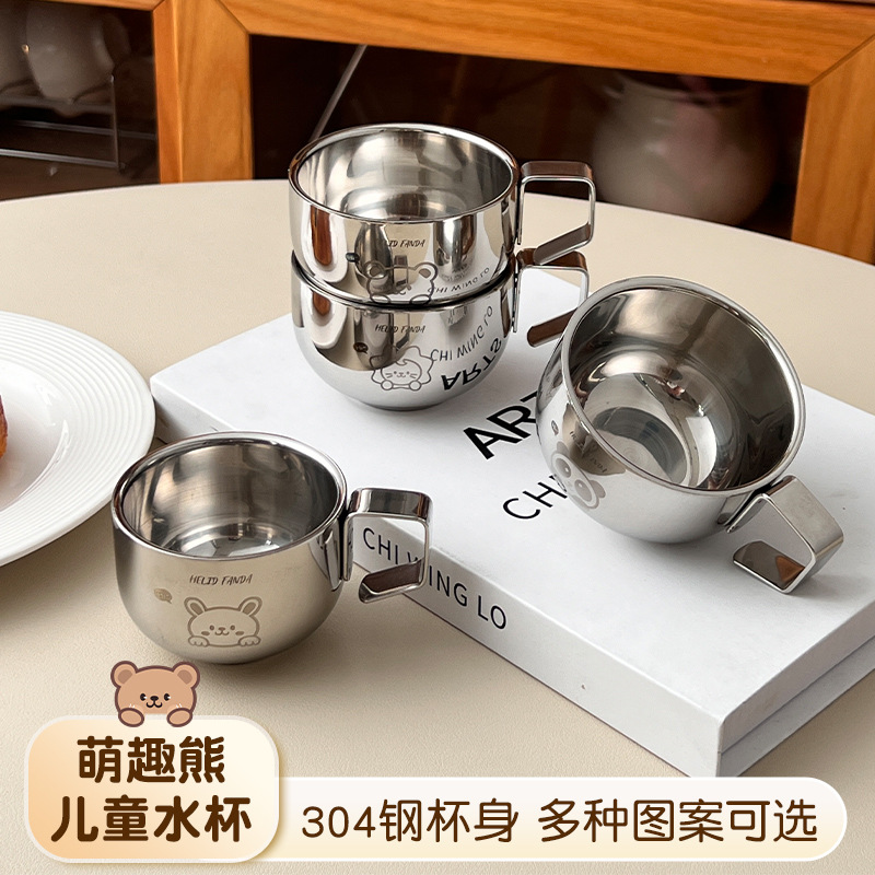 漫画カップクリエイティブ304ステンレス子供カップ厚い二重パーマ防止ミルクカップハンドル付き水カップ