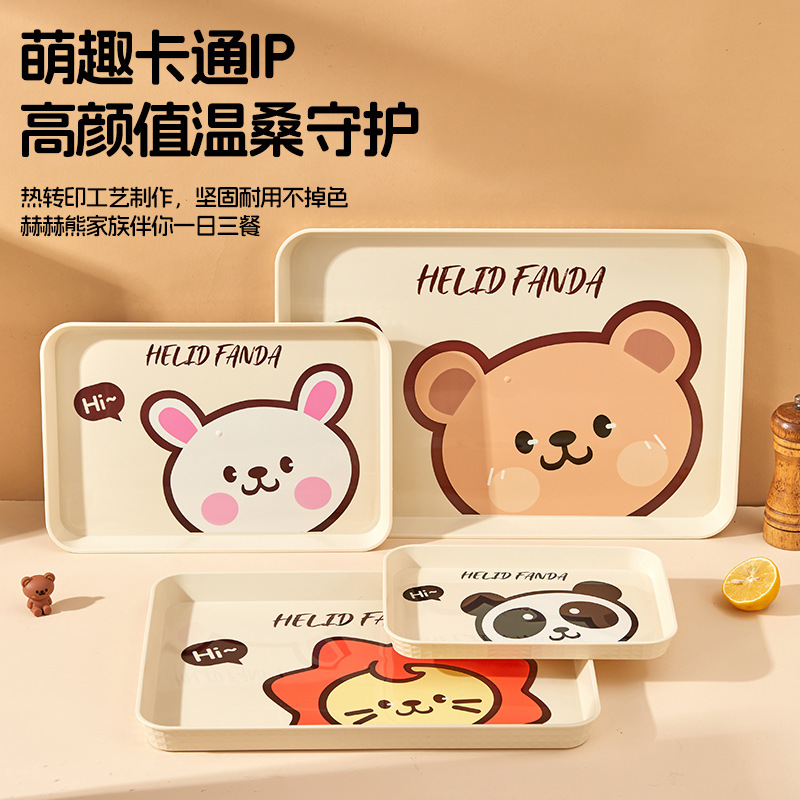 熊家族はトレイの四角いレストランで料理を提供する家庭用プラスチック製のお茶皿を多く使っています。