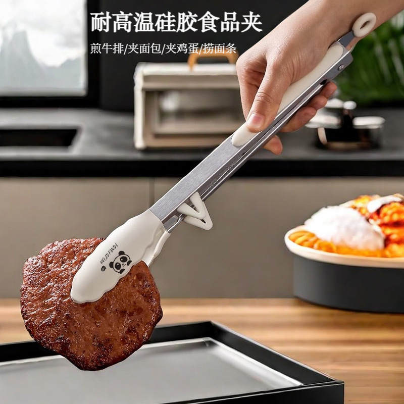 多機能食品クリップ耐高温シリコン食品クリップキッチンベーキングパンクリップステンレスステーキ焼肉クリップ
