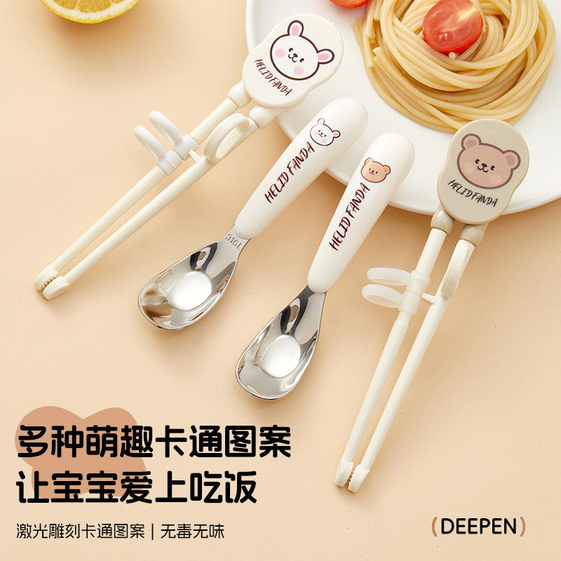 子供316ステンレス食器赤ちゃん補助食スプーンフォーク訓練箸屋外携帯三点セットプレゼント