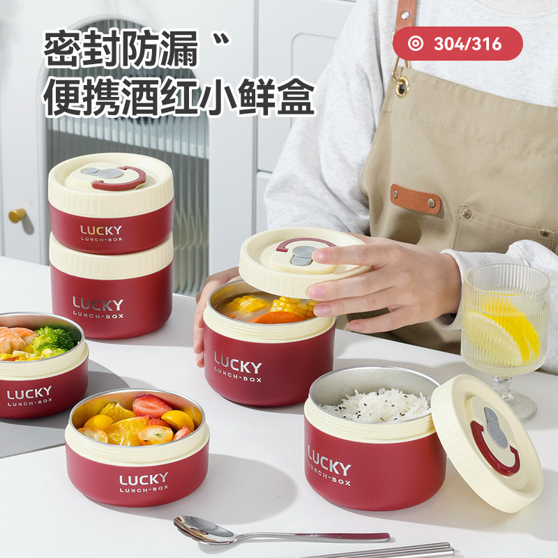 レトロ赤316ステンレス保温弁当箱学生サラリーマン蓋付き弁当箱電子レンジ食品級弁当箱