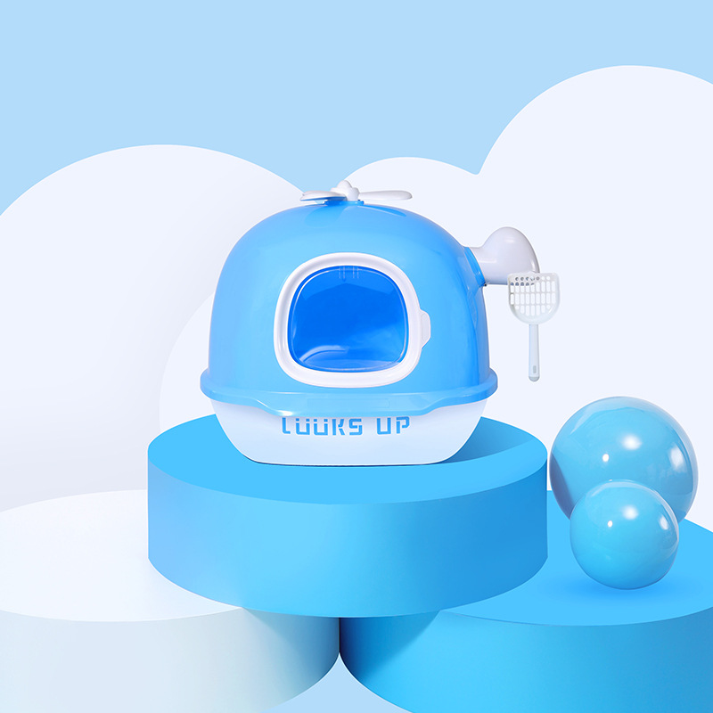 路可糸青空青空飛行機猫砂盆猫用品大空間全閉鎖式猫トイレ外はね防止