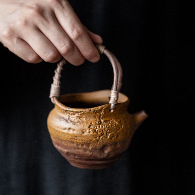 粗陶味噌釉薬提梁公道杯中国式レトロ家庭用茶器ティーポット