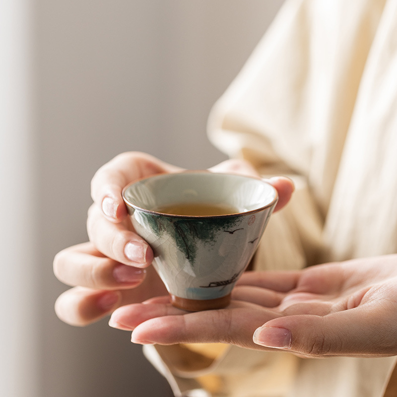 アイスフレーク釉薬手描き闘笠カップ中国式清新品茗杯家庭用事務茶器単杯カップカップ