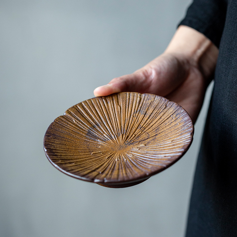 粗陶醤釉薬壺承果盤中国式レトロなオフィス用茶こし皿茶道部品