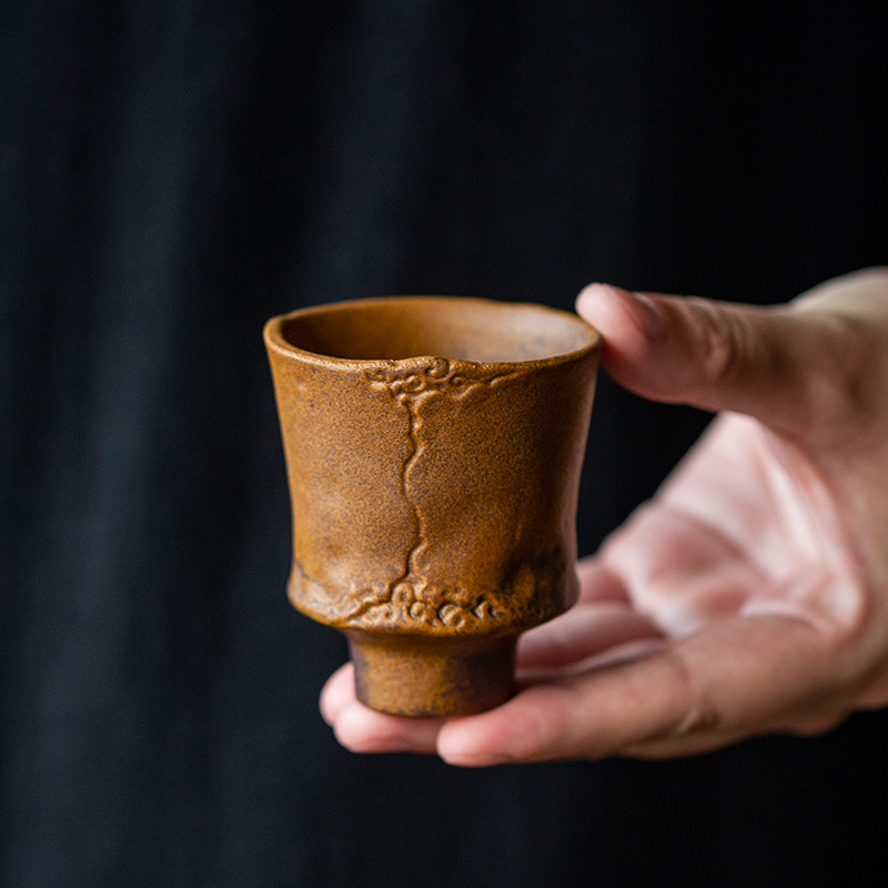 粗陶醤釉薬主人杯中国式レトロ品茗高足杯家庭用オフィス工夫茶具シングルカップ