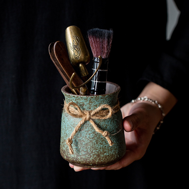 中国式のレトロな粗陶壺は四方の金を受けて水筒を蓄えて家庭用の工夫茶器の円形の春と緑の茶道の部品を受けます。