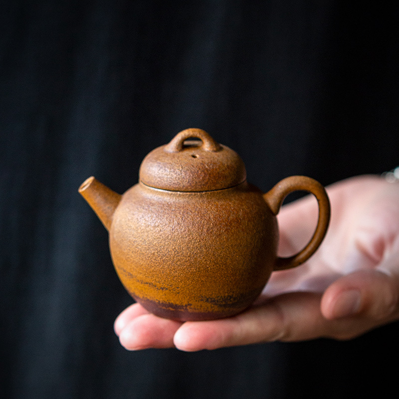 粗陶醤釉薬宮灯壺中国式レトロ泡急須家庭用ティーポット