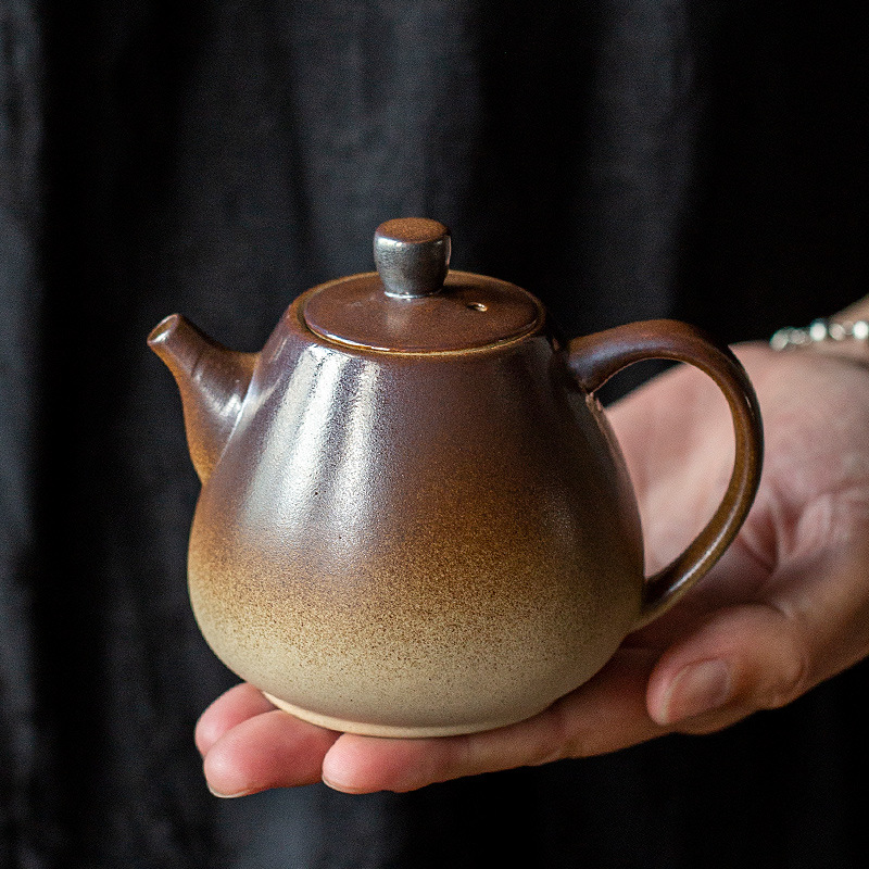 粗陶柴ブラウン釉薬静思壺中国式レトロ家庭用ティーポットの工夫茶器にお茶を入れてお茶を飲みます。
