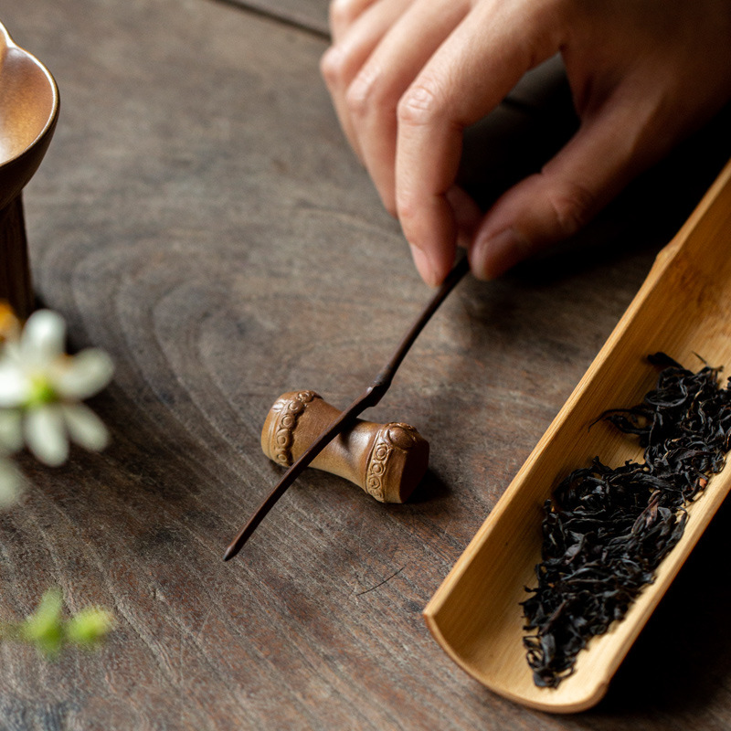 柴ブラウン釉薬竹節茶棚上げ茶挟みペンブラシ置き竹根挟み茶道茶遊びアクセサリー