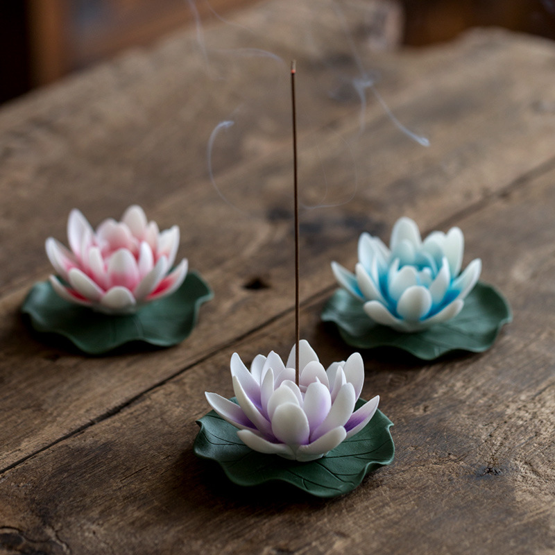 92】陶磁器線香炉蓮花弁家庭用室内禅意臥香炉沈香檀香薫香炉香挿卸