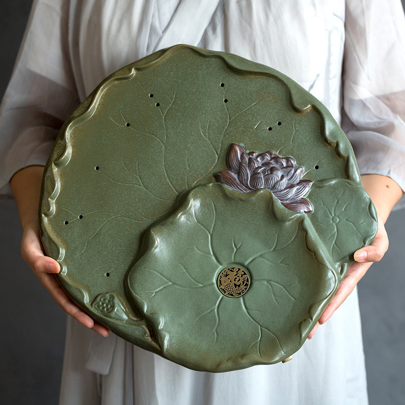 日本式ハスの葉蓮蓬小茶台カンフー茶器セットシンプル家庭用陶磁器茶盤泡茶セット卸売り