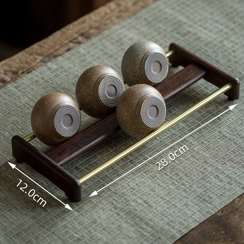 【13】銅木結合カップ棚茶道部品カップ収納棚単層実木干しカップ棚水切り棚
