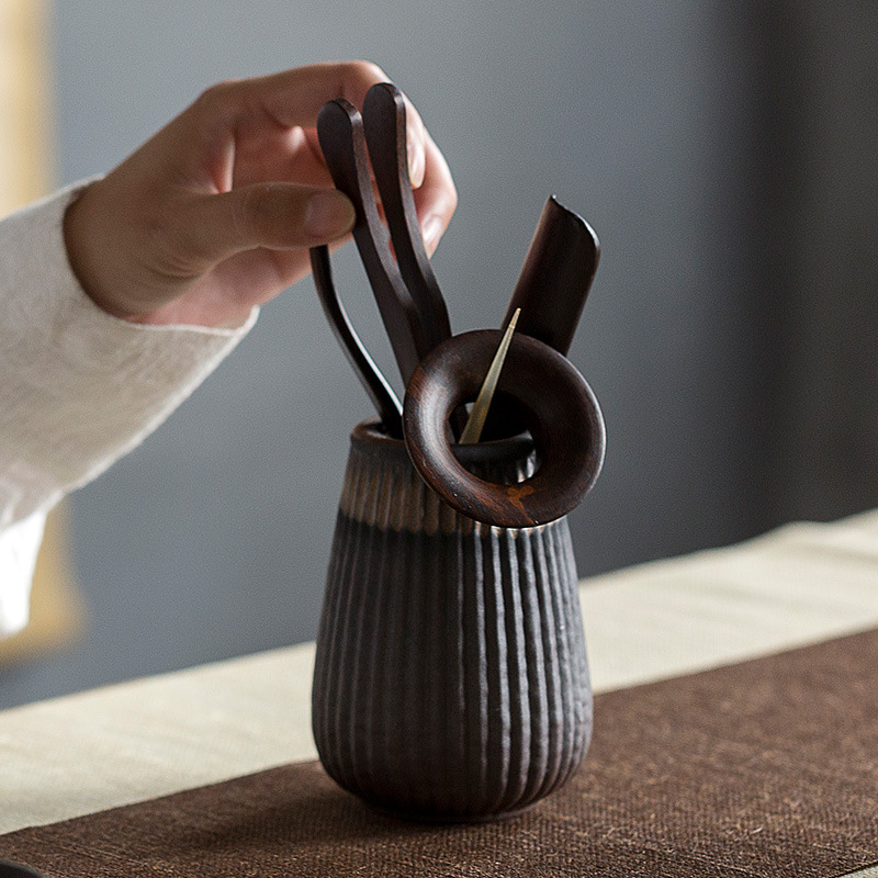 レトロ黒檀木実木茶道六君子セット家庭用粗陶工夫茶器茶道部品卸売り