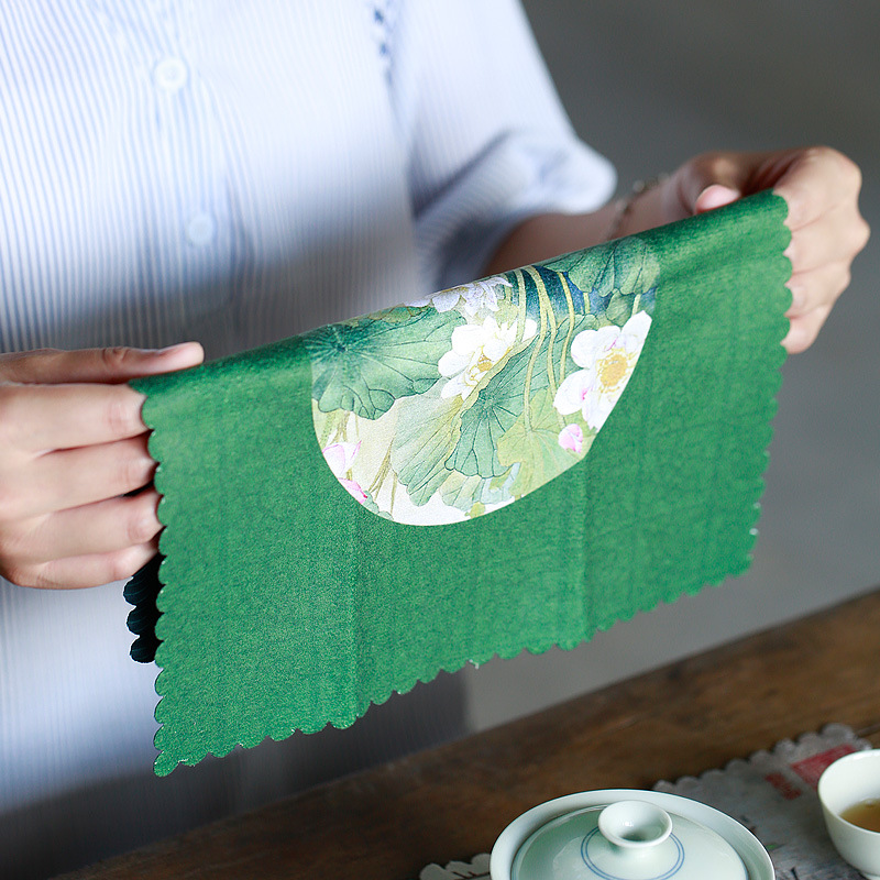 【11】カラー印刷ベルベット両面吸水茶巾軽薄茶布タオル茶皿テーブルクロス茶道部品