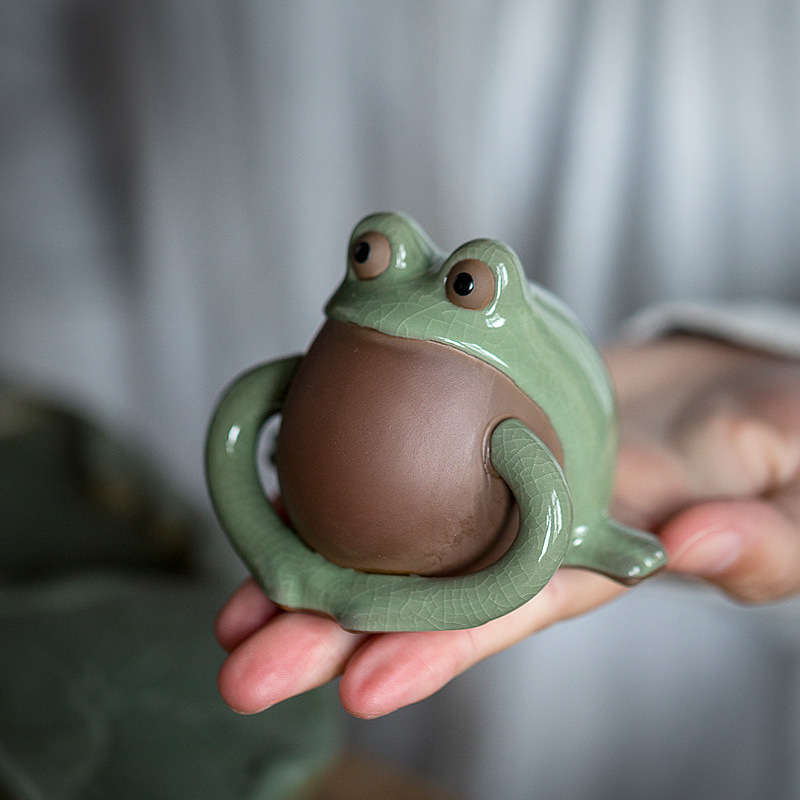 かわいいカエルのお茶は創意家庭用のお茶の皿の小さいサイズのお茶をかわいがります。