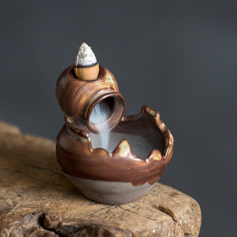 81】ミカンの釉薬の花のかめの逆流の香の家庭の室内の塔の香の手作りの香炉の香器の茶道の禅の意の置物の卸売り