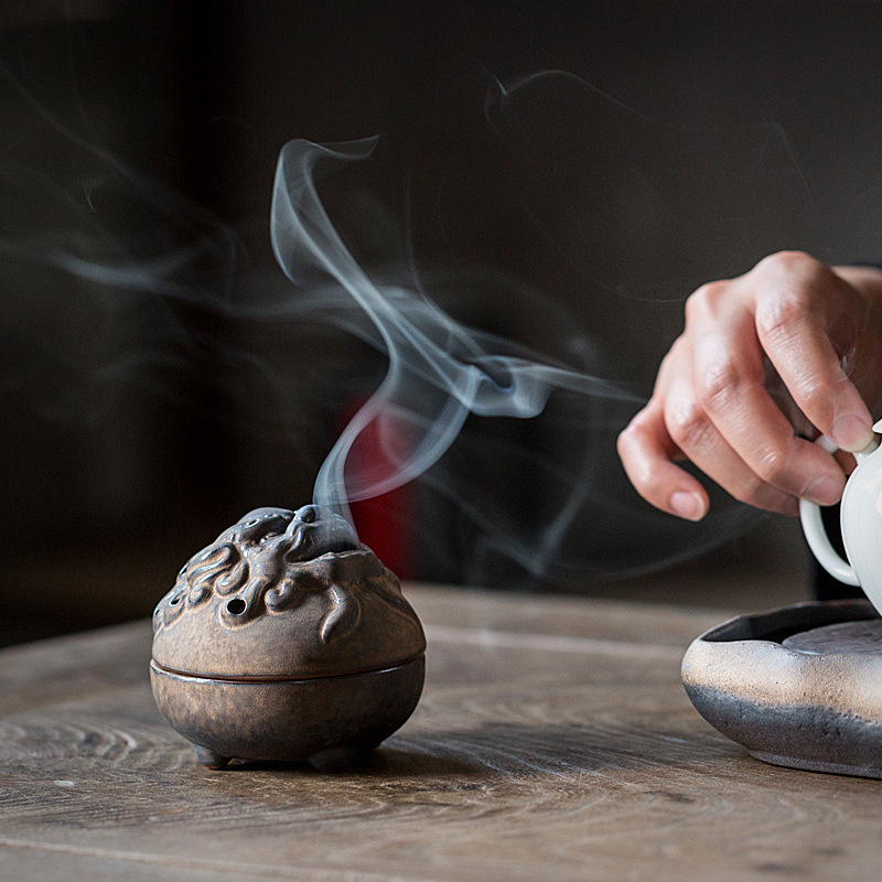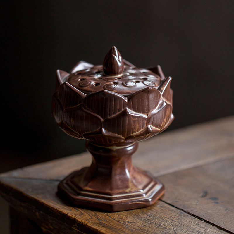 84】ミカンブラウン釉薬八宝蓮香炉家庭用陶磁器香炉茶道禅意檀香盤塔薫香炉卸売り