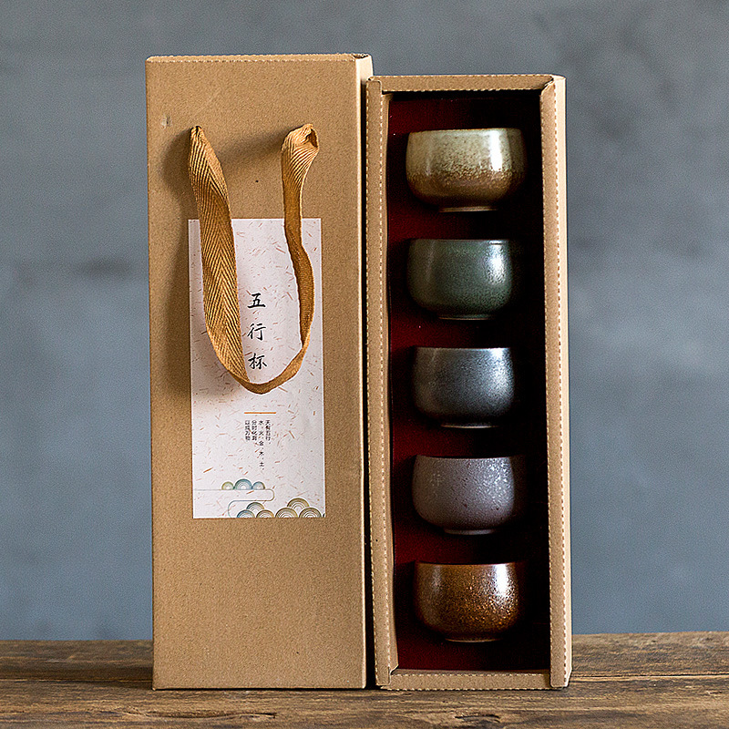 C34特価粗陶茶杯陶磁器日本式五行茶杯窯変工夫品茗杯名窯茶杯セット