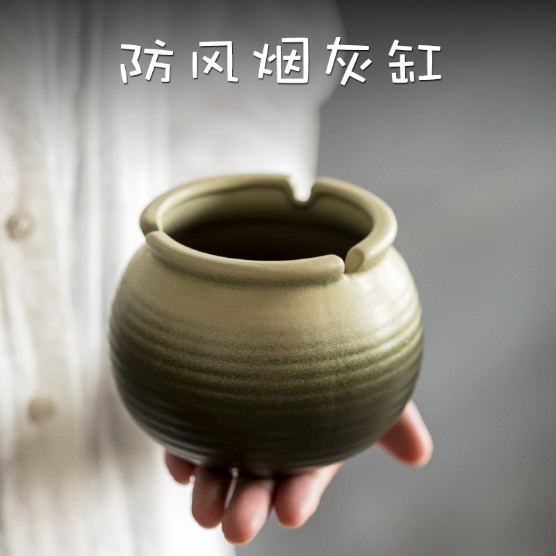 69】竹青古陶中号陶磁器加高灰皿家庭用灰皿客間茶数復古減煙器卸売り