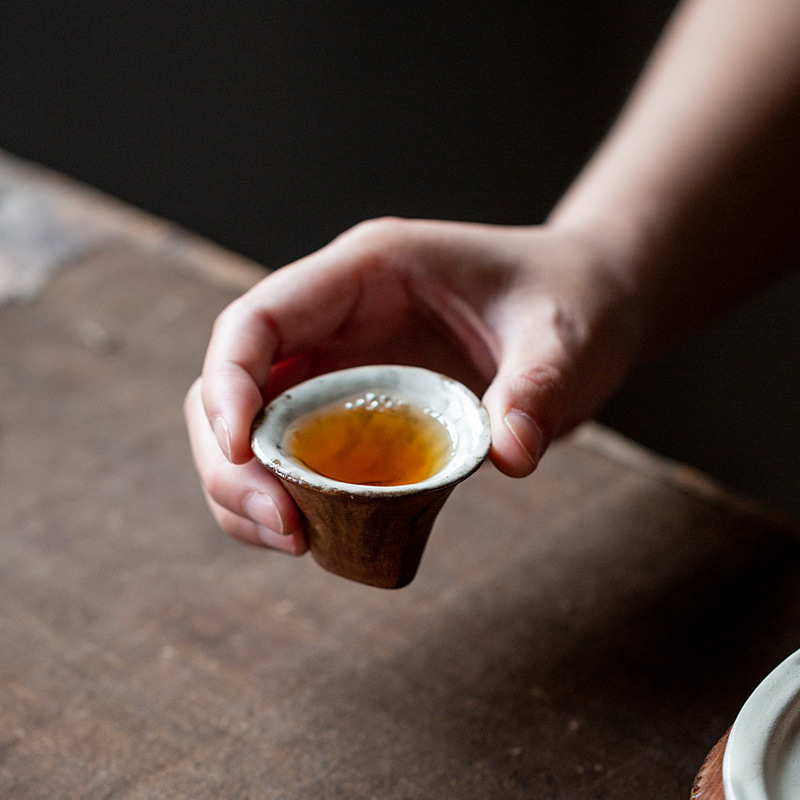 味噌の釉薬の粉は三角の杯の中国式の復古の陶磁器の杯の事務の家庭用の個人の品の茗杯の単杯を引きます。