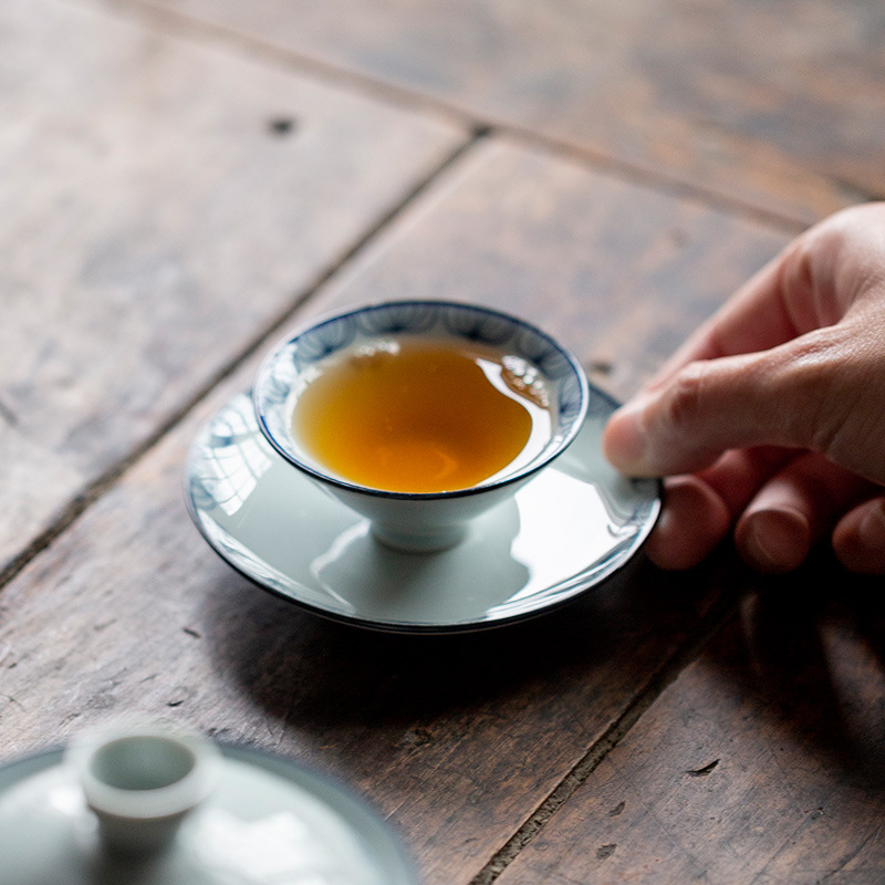 汝窯オフィスカップ個人カップ陶磁器袋蓋濾過茶水分離泡茶カップ描金家庭用マグカップ