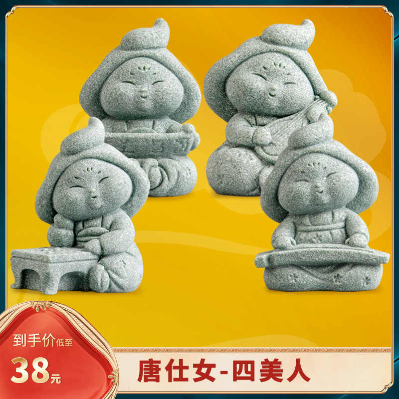 中国式唐仕女四美人置物青砂石国潮風家庭装飾品造景デスクトップ小茶寵