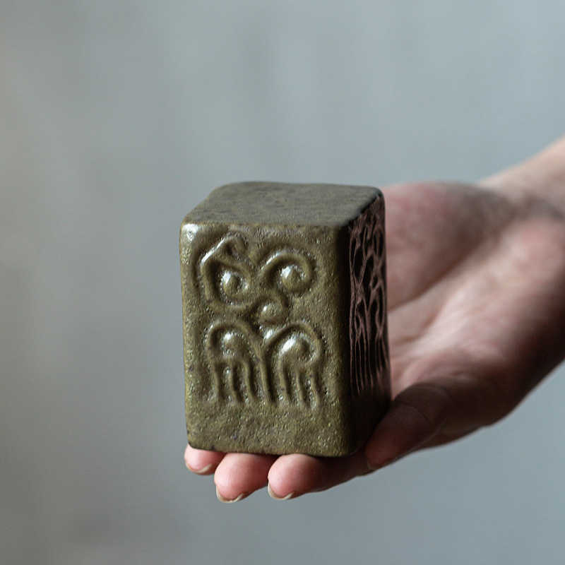 復古粗陶浮き彫り祥雲四方大蓋置中式茶器部品湯煮ティーポット蓋底托