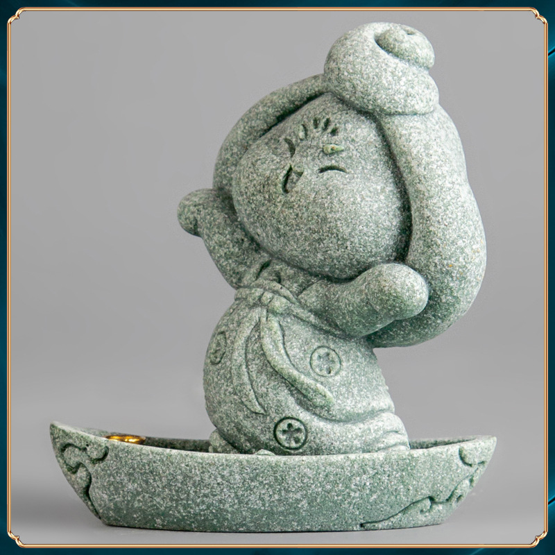 青砂石招財覚醒ライオン国潮癒し系創意工芸品置物茶寵香挿し会社ビジネスお土産