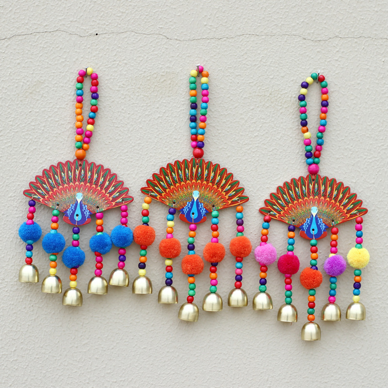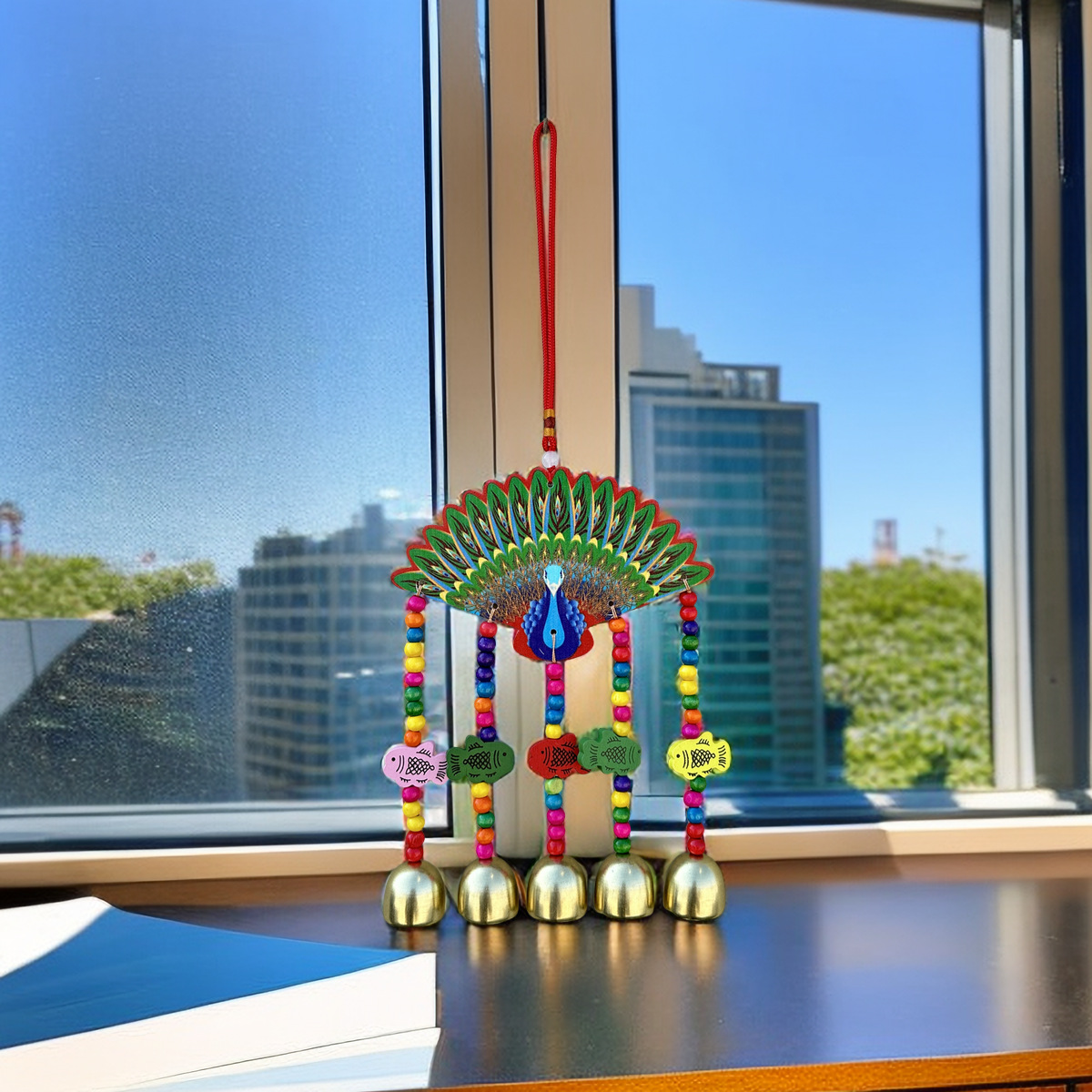 孔雀がスクリーンを開ける風鈴のドアベルが飾られています。