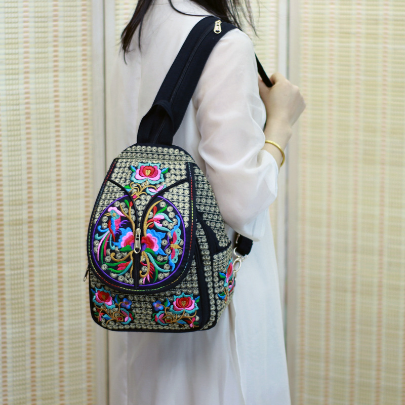 民族風の刺繍の肩の多い仕切りの小さいタイプの旅行のカバンの両用の刺繍の斜め掛けの胸のカバンの女性の百合のお母さんのリュックサック