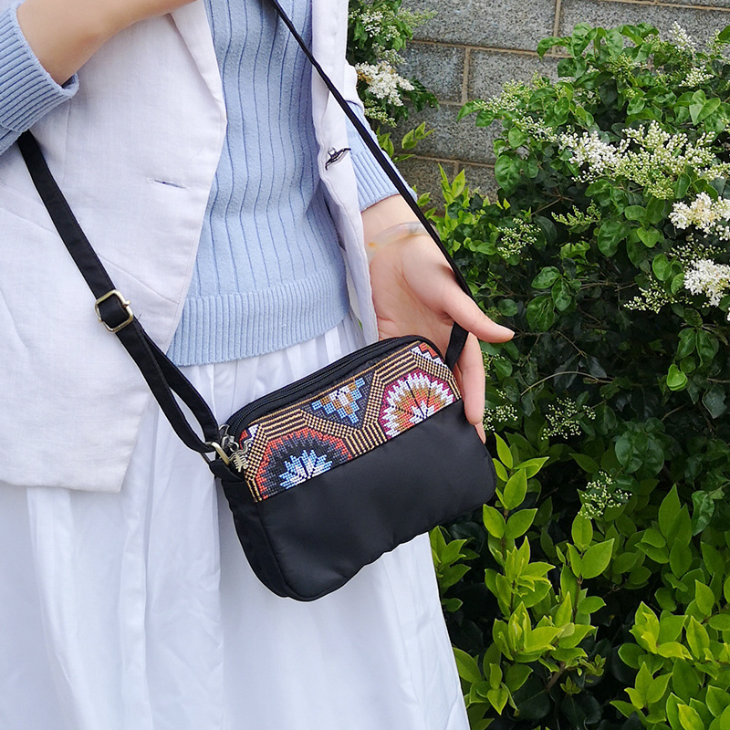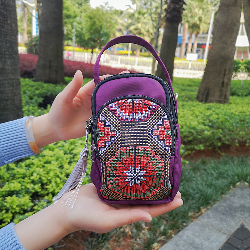 新しい民族風刺繍バッグ刺繍キャンバスカジュアルシンプル携帯電話小銭正方形バッグレディース斜め掛けバッグ