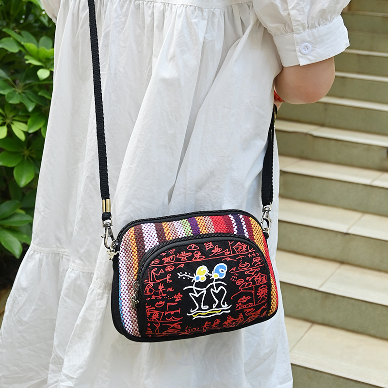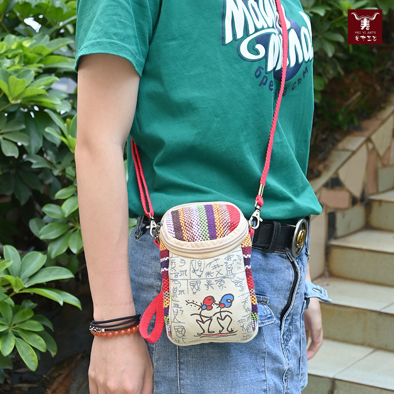 雲南民族風キャンバスプリント携帯電話斜めショルダーバッグ麗江観光東巴文小銭可愛いハンドバッグ