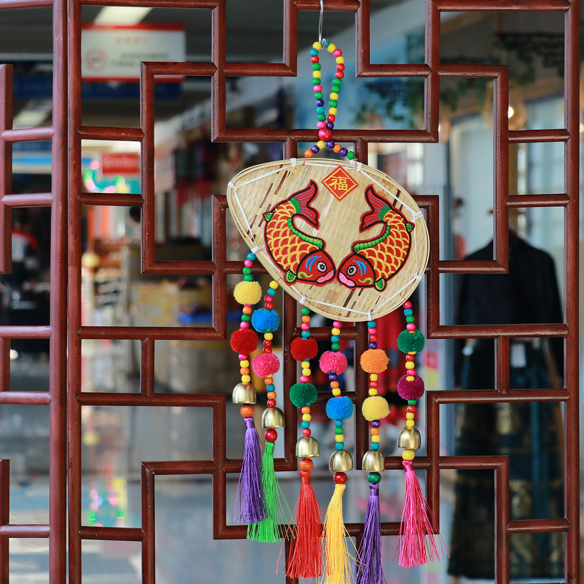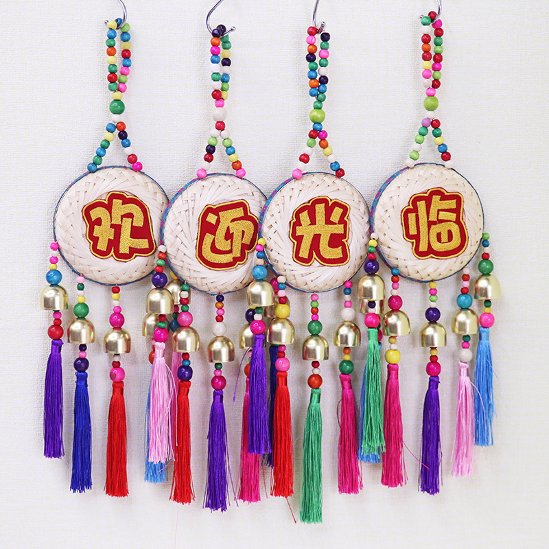 ホーム風鈴掛け飾り竹編み銅鈴ペンダントバー農家楽店舗飾り玄関ベランダ壁飾り