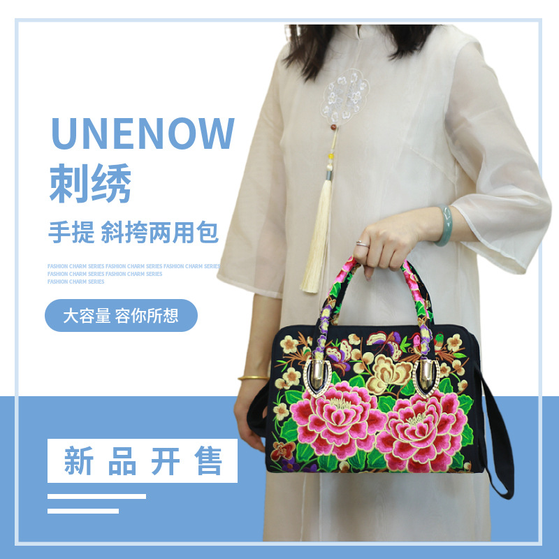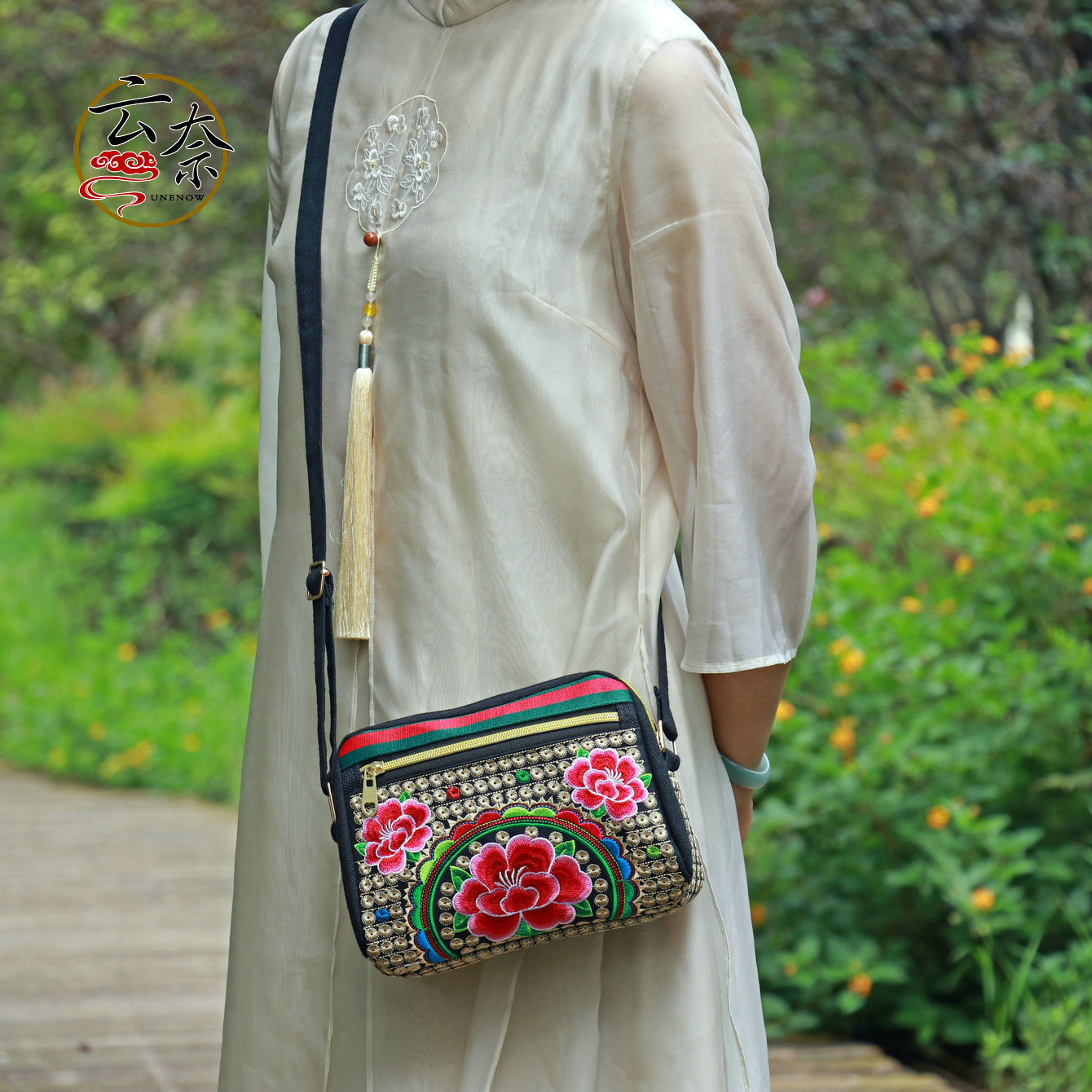 雲南民族風刺繍バッグ斜めショルダーバッグイ族刺繍バッグ女性新型手提げショルダーバッグキャンバス大容量