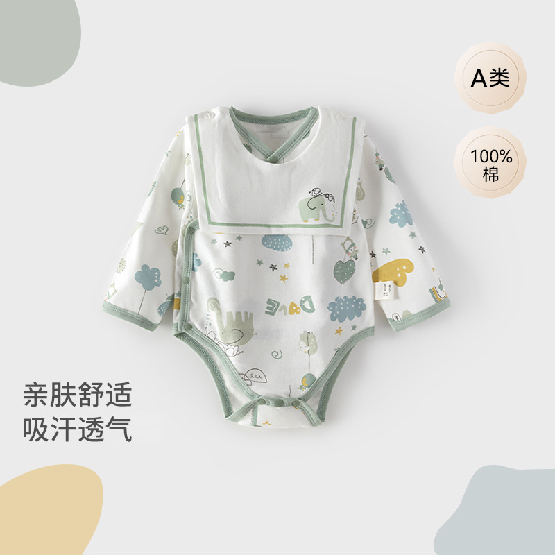 春と秋の新入生の赤ちゃんのお尻の服の長袖の三角の服は四季のタイプの赤ちゃんの連体の服に登ります。