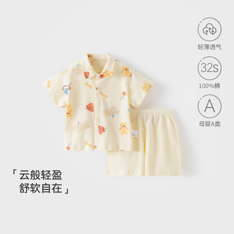 赤ちゃんセット夏純綿男女赤ちゃん折り襟シャツ半ズボン2点セットキッズ外出半袖カバー薄手タイプ