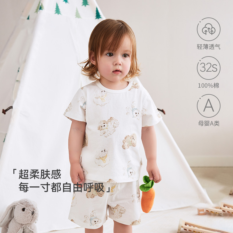 新生児赤ちゃんセット夏の薄手男女赤ちゃん半袖パンツ2点セット純綿子供外出tシャツセット