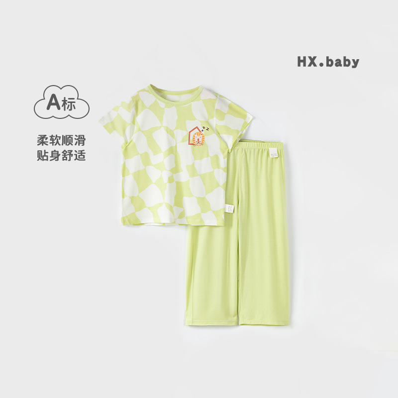 ベビースーツの優可糸夏の薄い男女の赤ちゃんの半袖の2セットの子供の家の服のズボンのスーツの夏
