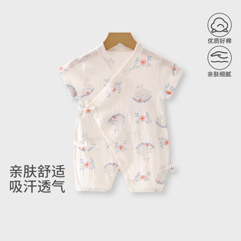新入生の赤ちゃんの服の赤ちゃんのお尻の服の夏の薄いタイプの純綿の骨のない赤ちゃんの半袖の服は夏の服に登ります。