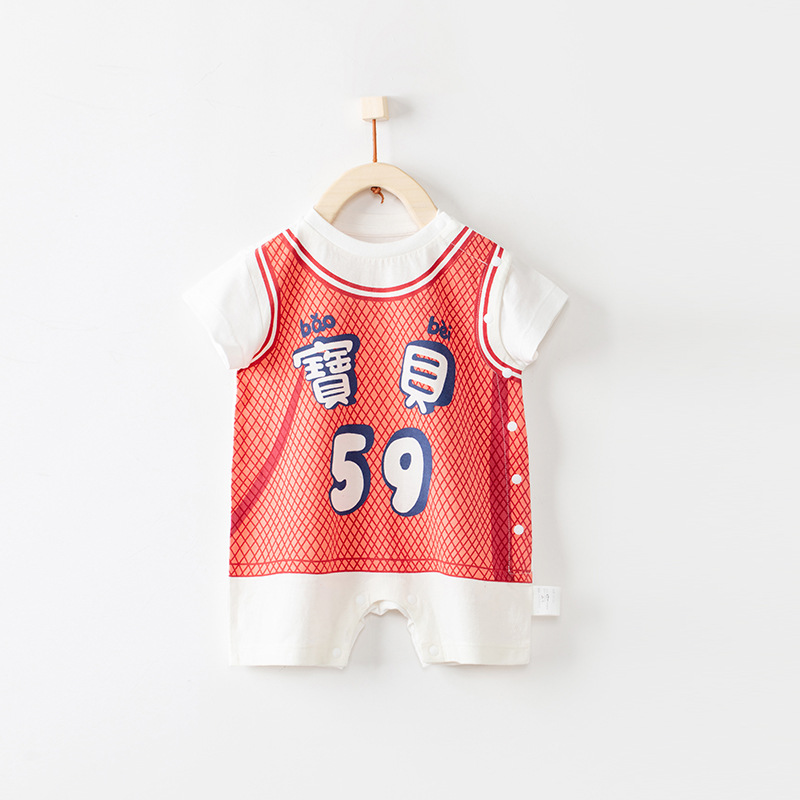 ベビージャンプスーツ夏薄い純綿ベビー半袖ハーレム偽ツーピース幼児ハイハイスーツ夏服