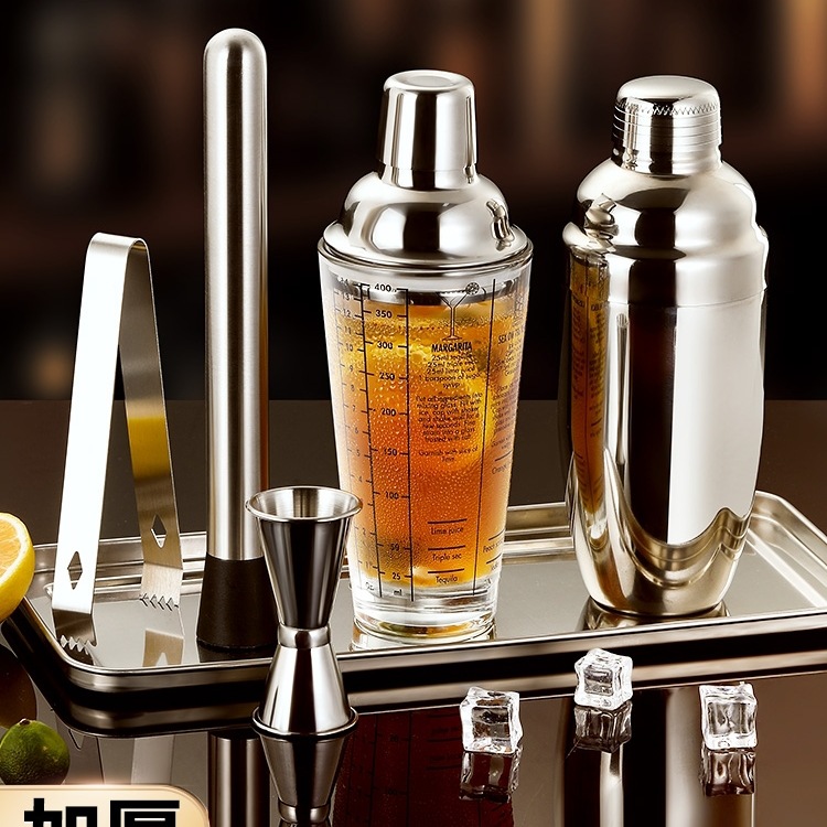 ガラスシェーカーカップミキサーセットレモンティーツールセットシェーカーカクテルステンレス鋼ミキサーハンドシェーカー