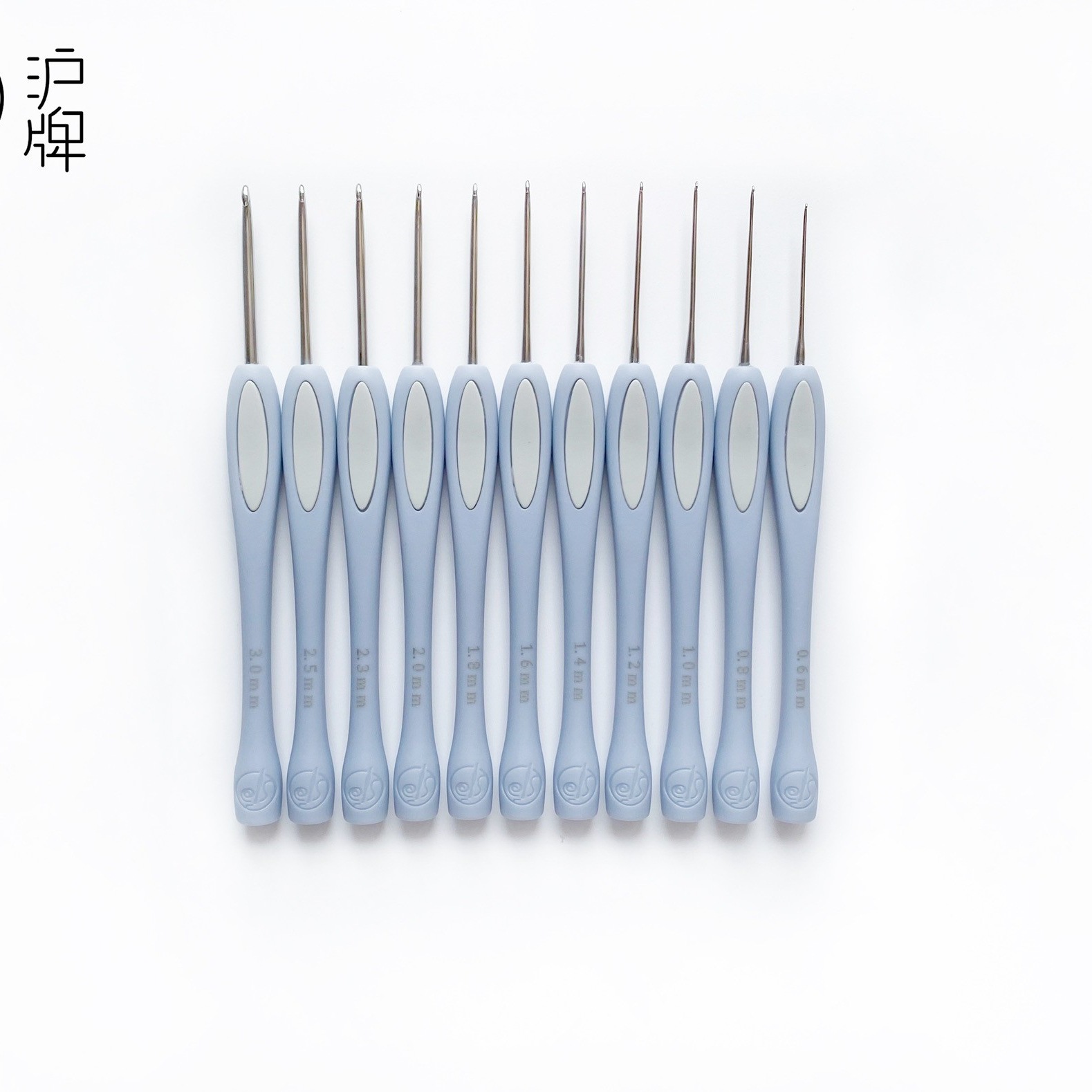 かぎ針編み滑り止めソフトハンドルパッドステンレス鋼手磨き編み針セットかぎ針編みブルーグレーハンドル