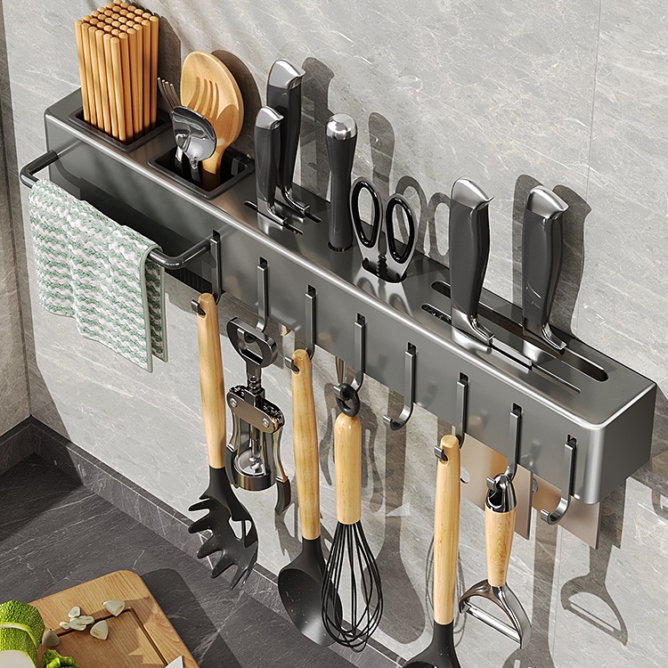 多機能ナイフホルダー、包丁用品収納ラック、箸かご、一体型収納ラック、箸筒、壁掛け、パンチフリー