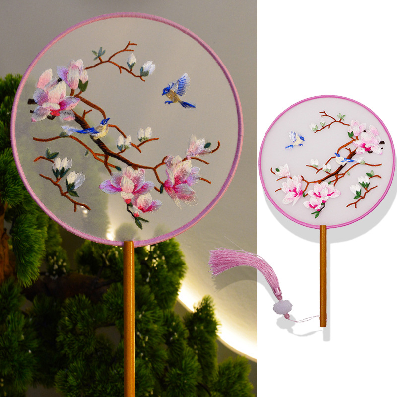 中国刺繍扇子、古代扇子、無形文化遺産両面刺繍、中国風漢服小道具、踊り扇子、丸扇子