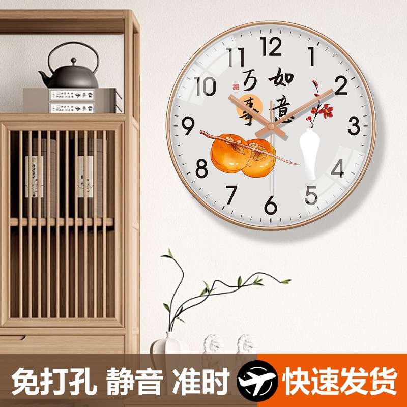 すべてがうまくいく時計壁時計リビングルームホーム壁掛けクォーツ時計新しい中国風の雰囲気の寝室のムーブメントサイレントバッテリー