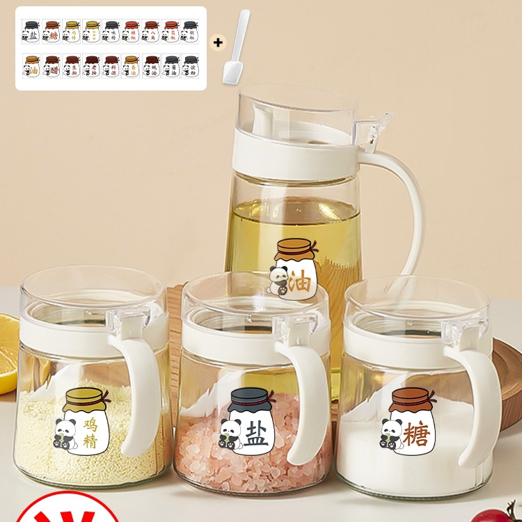 塩入れ家庭用キッチン調味料ボックス組み合わせセットガラスオイルポット大容量防湿ガラス調味料瓶調味料ボックス