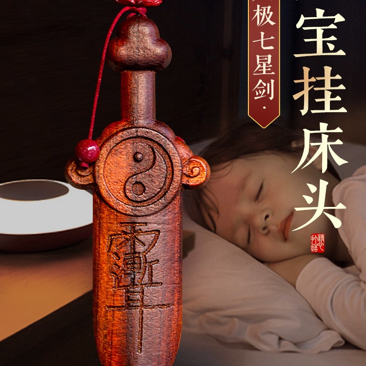 天然雷撃木製ピーチウッドソード紫微ペンダント太極拳七星剣子供用ベビーベッドサイド木彫りドア